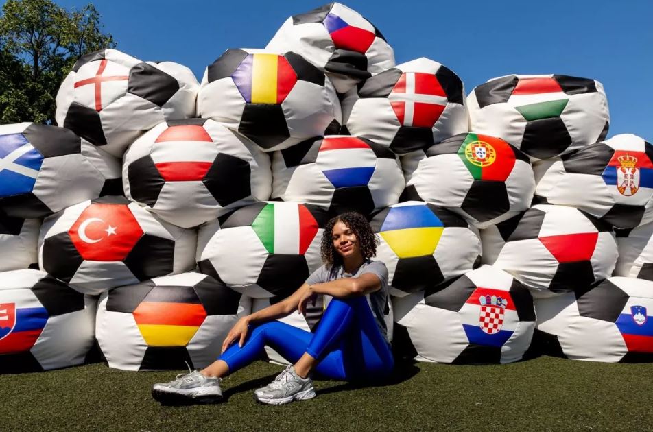 European Football Large i PU-läder är en rolig och bekväm säcksäck för barn och vuxna.